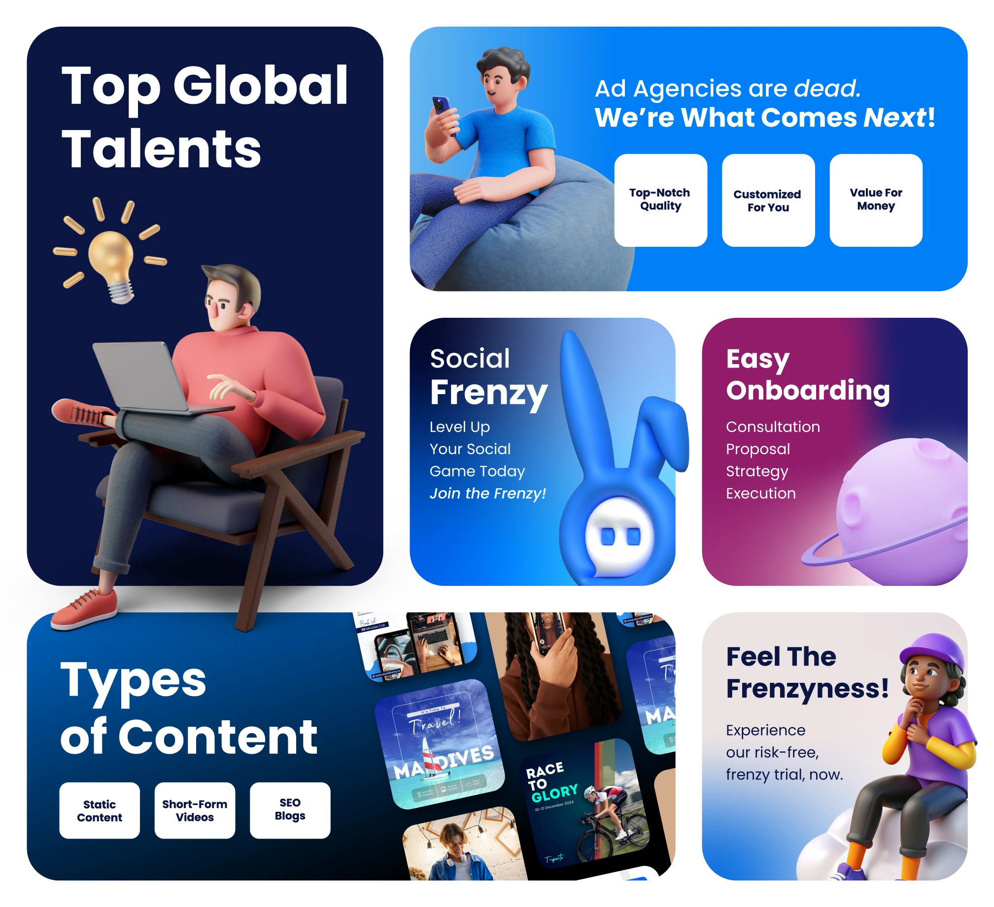 Forget the headaches of working with agencies or freelancers. We’ve perfected the formula for getting your creative work done, hassle-free.